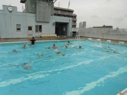 意外にも水温が高く、プールに入ればそれほどの寒さを感じることもなかったようです。