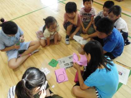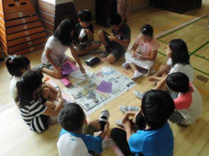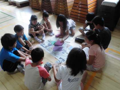 縦割り班ごとに8月、9月の玄関掲示物の作成を分担して行いました。