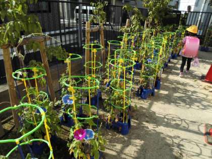 毎日、水やりをしながらアサガオに声をかけてやると、花のつきがよくなるそうです。
