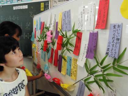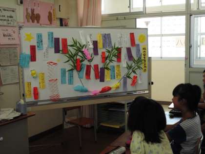 各教室では、七夕にちなんだ飾り付けが行われています。