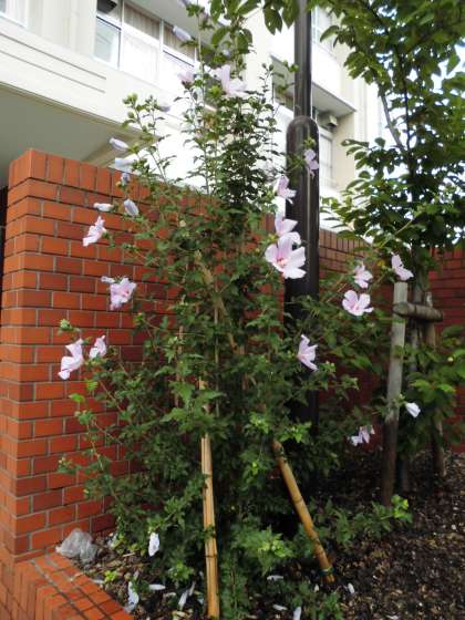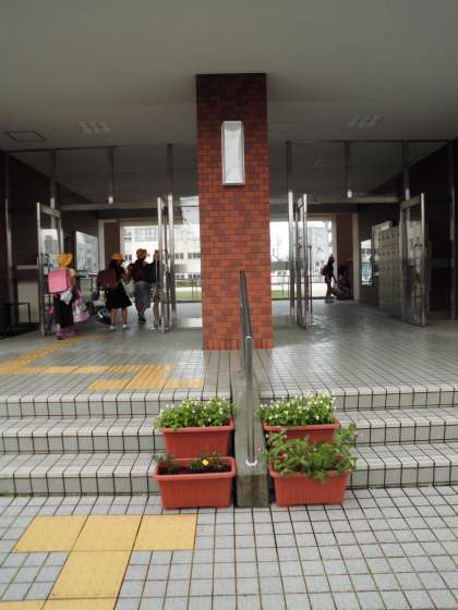 門、玄関、校長室、それぞれで花が咲いています。