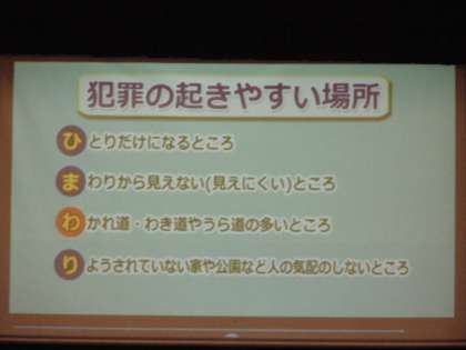 「いかのおすし」だけでなく、危険な場所「ひまわり」についても、指導がありました。