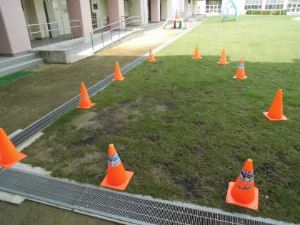 しばらくの間、カラーコーンで囲っているエリアは立ち入り禁止です。