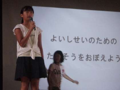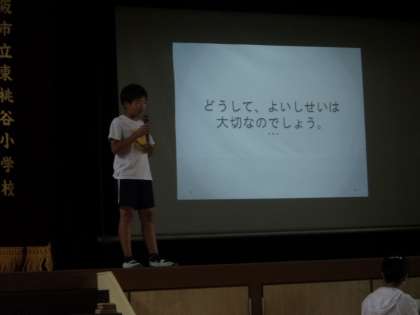 健康委員会のメンバーがそれぞれに役割を分担し、良い姿勢についてわかりやすくプレゼンテーションをしました。