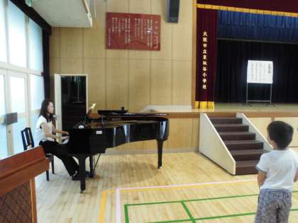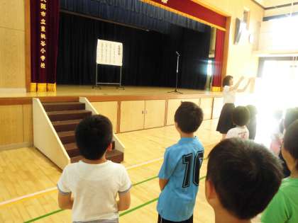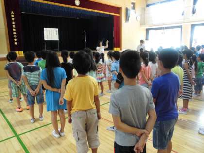 開始予定時刻前に、全校児童が講堂に集まりました。