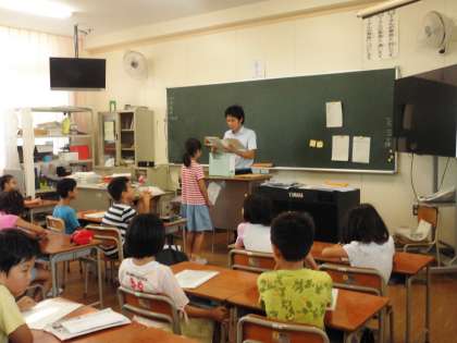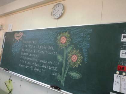 担任から表彰カードを渡されたり、黒板メッセージがあったり、通知表を渡されていたりしています。