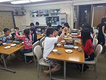 2日目の夕食は、すき焼きです。食べ始めると勢いがあります。