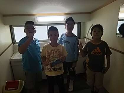 7:00からの朝の会に備えて、洗面も済ませています。