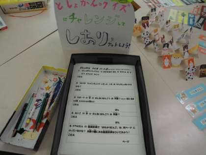 図書館クイズをしていました。