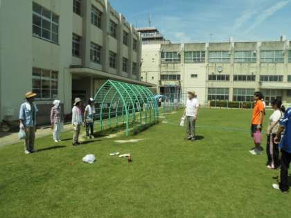 1時間ほどの雑草抜き作業に続いて、芝刈りも行いました。