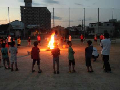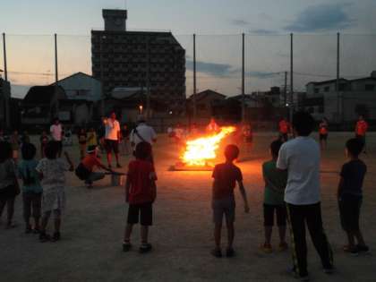 暗くなるにつれ、炎の明るさが増してきて、先生も子どもたちものりのりです。