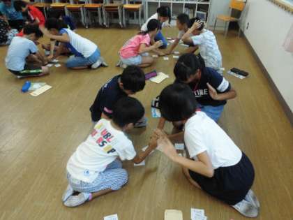 子どもたちは、ゲームをしながら英語に慣れ親しんでいきます。