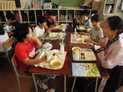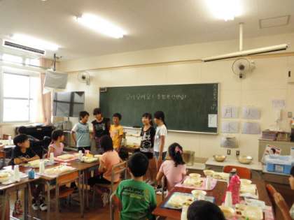 給食の時に流す音楽も、今日は韓国・朝鮮の音楽です。