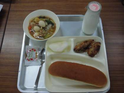 中華煮、あげギョーザとあるように中華メニューでした。これで、パンも揚げパンだったら、完全に中華メニューです。