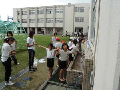 水風船をつかってあてっこゲームということで大いに盛り上がっていました。