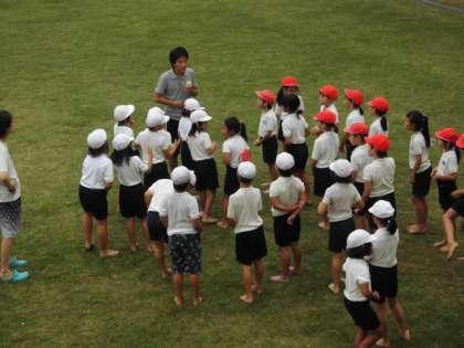 3年生は、PTC集会を芝生で行いました。