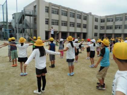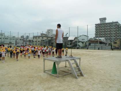 金曜日の朝は児童集会ですが、今朝は運動会に向けての集団行動・足踏み・行進・ラジオ体操について全体指導を行いました。