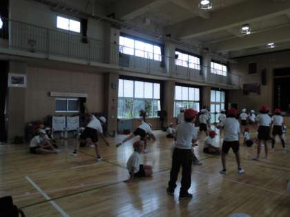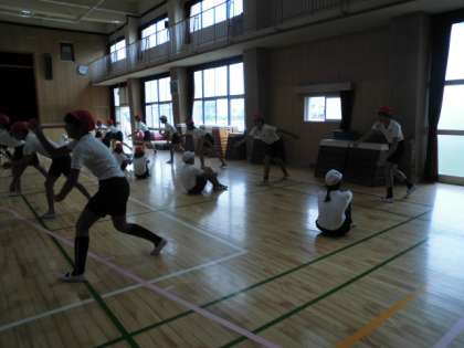 5・6年生は、講堂にて運動会に向けての練習をしていました。