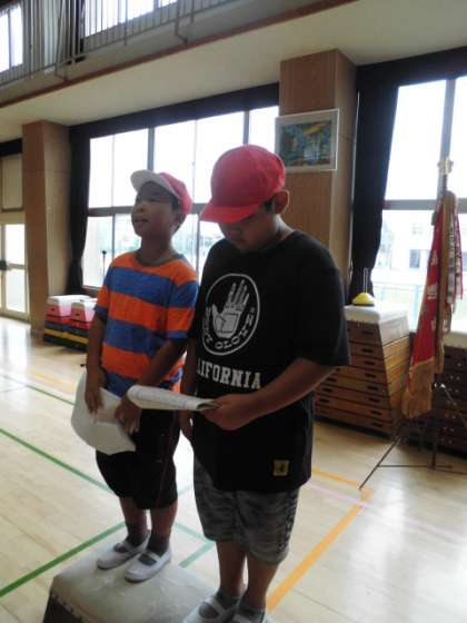 児童朝会で校長からは、ふれあい敬老はがきの返事をいただいたこととその内容の紹介などをしました。