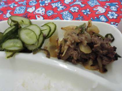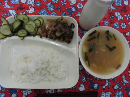 献立は、プルコギ、トック、あっさりきゅうり、ごはん、牛乳でした。
