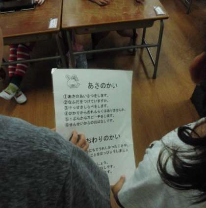 当番の児童が、朝の会の進行をしながら健康チェックやスピーチをしていました。