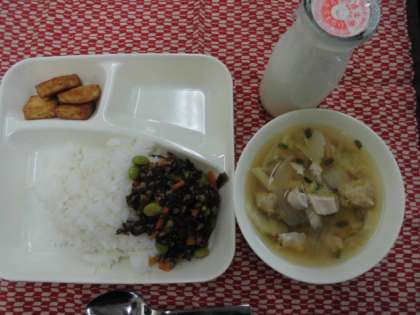 給食では初めていただくジューシー(配食後に各自で混ぜます)ですが、子どもたちも「おいしかったー」と、感想を述べていました。