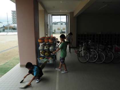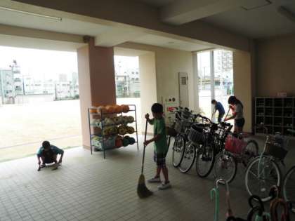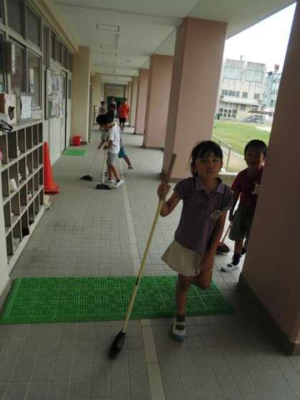 休み時間が終わったら、素早くそうじ担当の場所に向かった子どもたち。