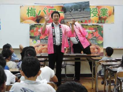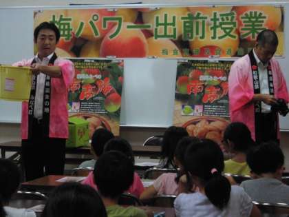 和歌山県みなべ町役場より学校に来てくださり、梅のお話をしてくださいました。