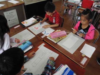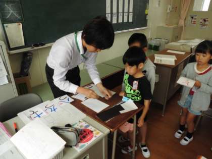 それぞれの数グループで発表に決まったかぞえうたを用紙に書き込んで、発表係が発表します。