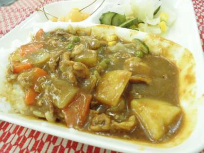 ポークカレーライスは、小麦アレルギー対応として米粉を使ってルーを作っています。いつものカレーよりもマイルドな味わいでした。いつものカレーライスと同様にとてもおいしくいただきました。