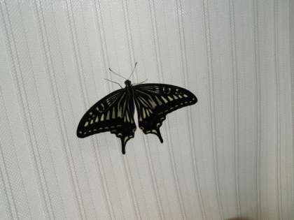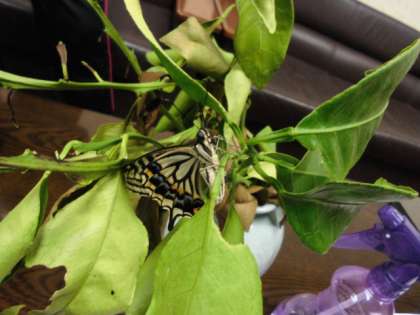 校長室のアゲハチョウがサナギから蝶になりました。(羽化)