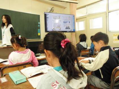 1時間目は1年生の算数科の授業、2時間目は3年生の社会科の授業を参観していただきました。