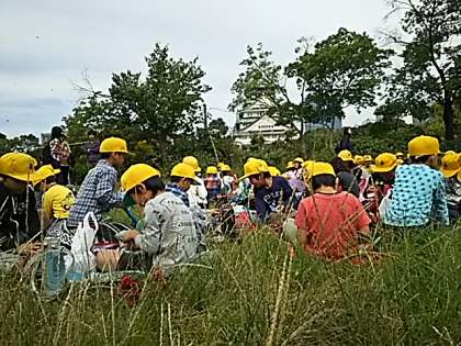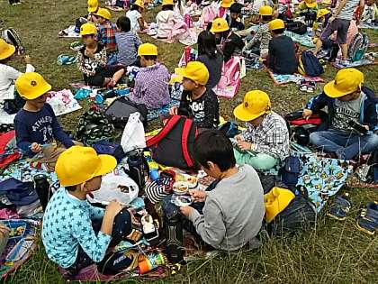 お楽しみのお弁当タイムが始まりました。1・2年生が混じって仲良く食べ始めました。