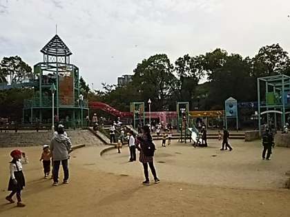 遊具のある広場で遊んでいます。全員、元気いっぱい。