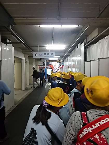 立派なあいさつと立派な態度の6年生。いよいよ出発です。7時55分に鶴橋駅東口到着。