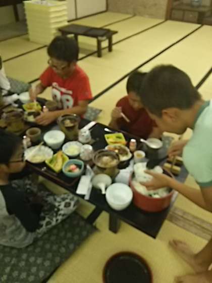 美味しい食事をしっかりといただく子どもたちです。おかわりを何杯もしています。
