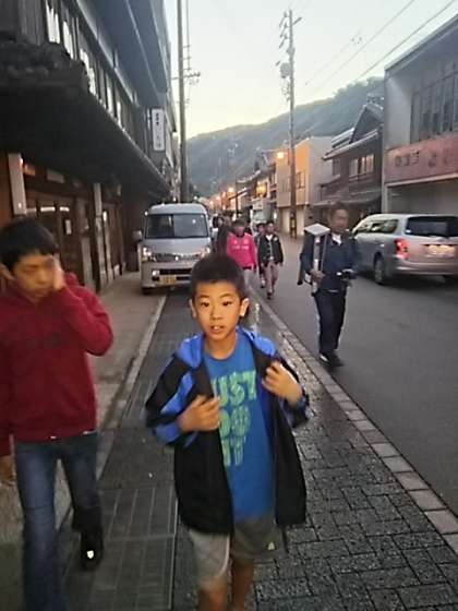 5時50分に集合。十分に睡眠をとれていない子どももいるようですが、散歩に出発です。