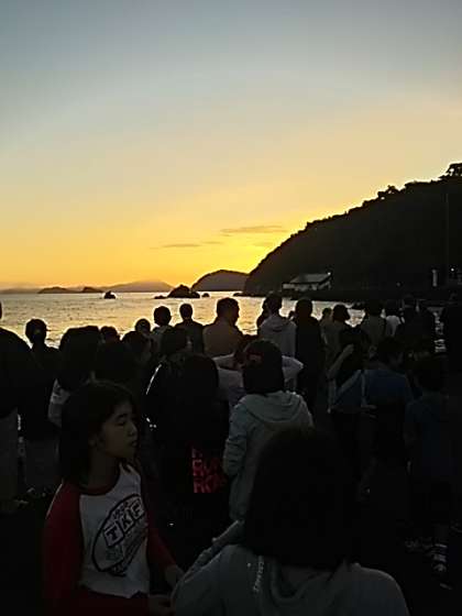日の出間近。宿泊されている一般の方も大勢集まっています。