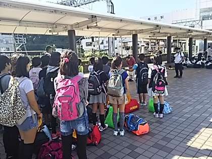 大きな荷物を駅まで届けてくださった吸霞園の方にあいさつをしました。