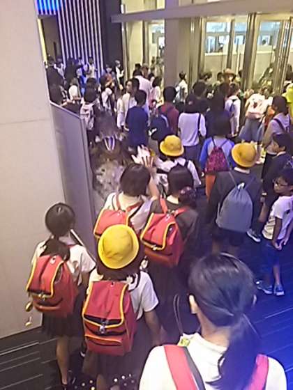 ロビーで出演者とハイタッチ!劇の感動を胸に学校に帰ります。