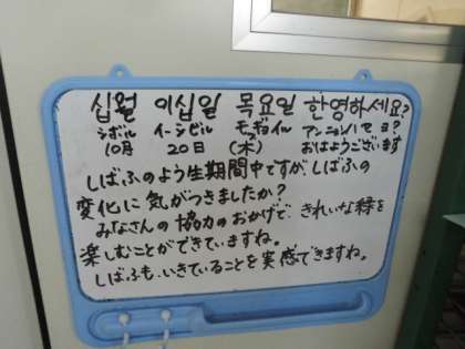 4年生の教室扉のメッセージにもあるように冬芝の芽がどんどん成長しています。