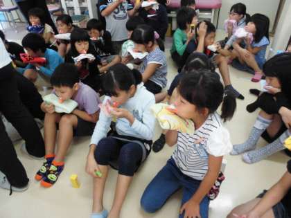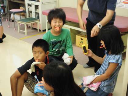 ・タオルを顎にあてながら、砂時計で3分間はかりフッ素塗布ができました。
