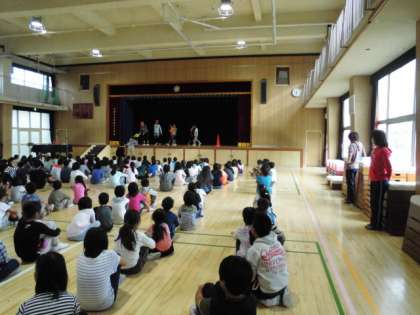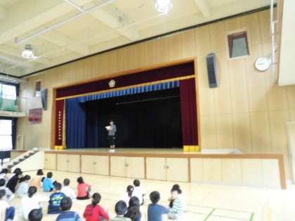 今朝の児童集会では、10月29日の土曜授業で行う「たてわり班交流会」で行う種目説明をしました。