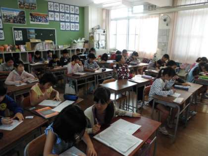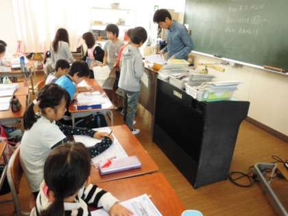 4年生、3年生の教室でも、子どもたちが主体的に算数プリントなどにチャレンジしています。