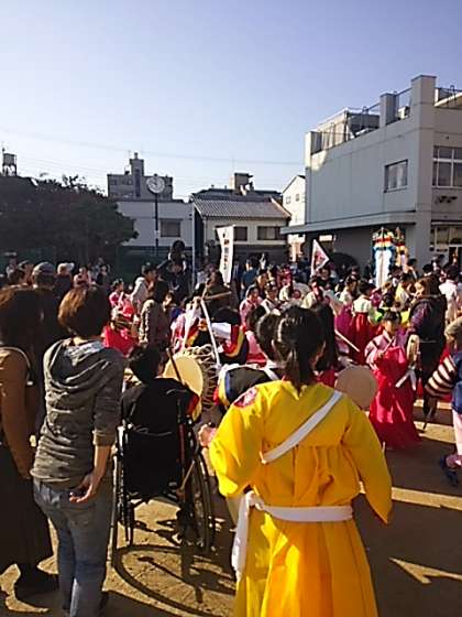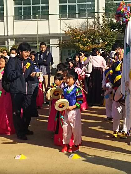 ウリチングの子どもたちが舎利寺小学校に集まりました。
