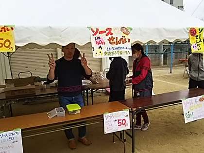 今年も、ソースせんべい400枚完売いたしました。売り上げは、勝山中学校の中国交流資金支援に協力します。