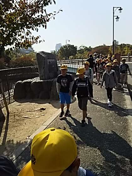 大阪城公園内を通って読売テレビに向かっています。