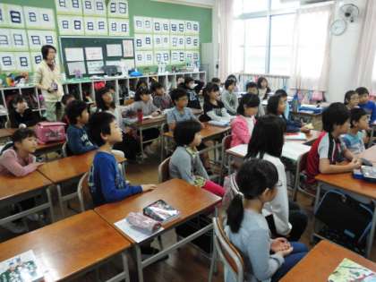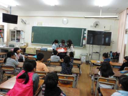 今日は、図書委員会児童が各学級で読み聞かせをしています。