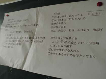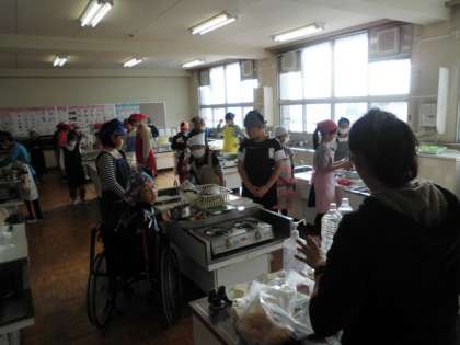 準備するものや調理手順等を確認して、班ごとに調理が始まりました。