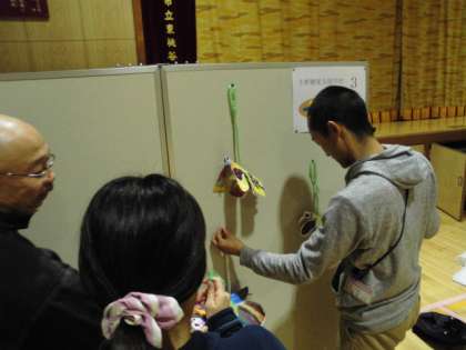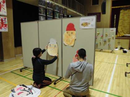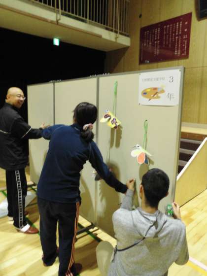 作品が袋から取り出され、パーテーションに展示されました。